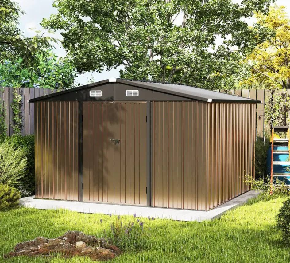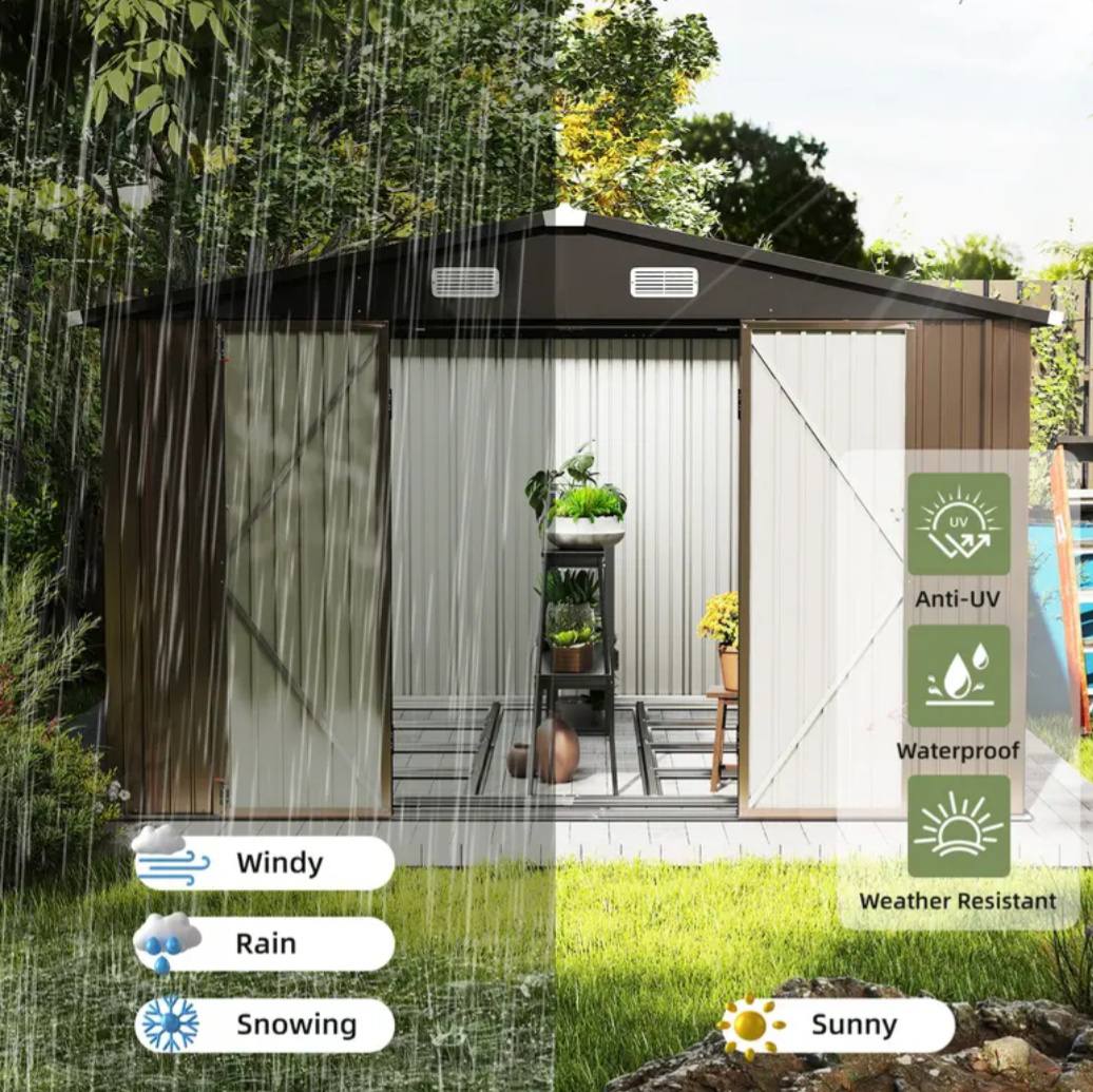 9 X 6 FT Outdoor Storage Shed Metal Garden Sheds with Pitched Roof Tool Storage House for Backyard, Patio and Bike Storage